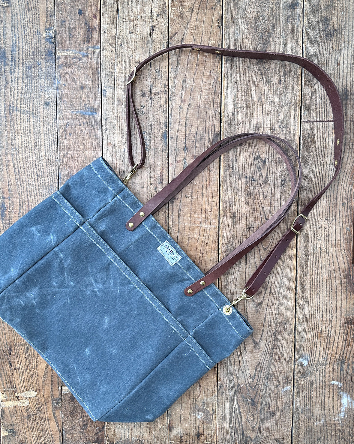 This versatile, naturally water repellent tote is our best selling go-to for daily carry. Small batch handmade in our Omaha, NE studio where 90+% of our waste is composted or recycled.