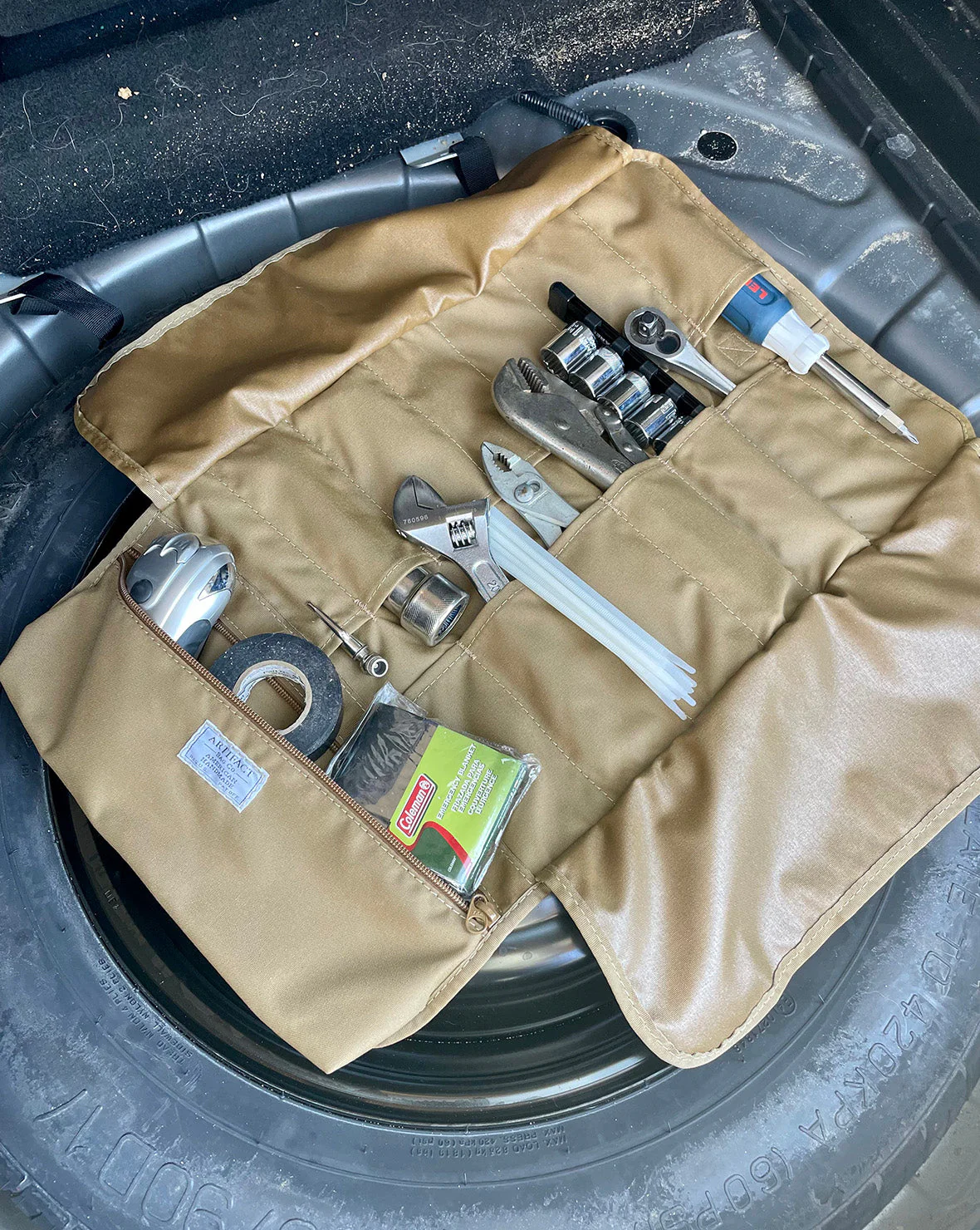A classic tool roll for storing essential tools in your car, boat, camper, airplane, motorcycle, sarcophagus, or workshop. Small batch handmade in our Omaha, NE studio.