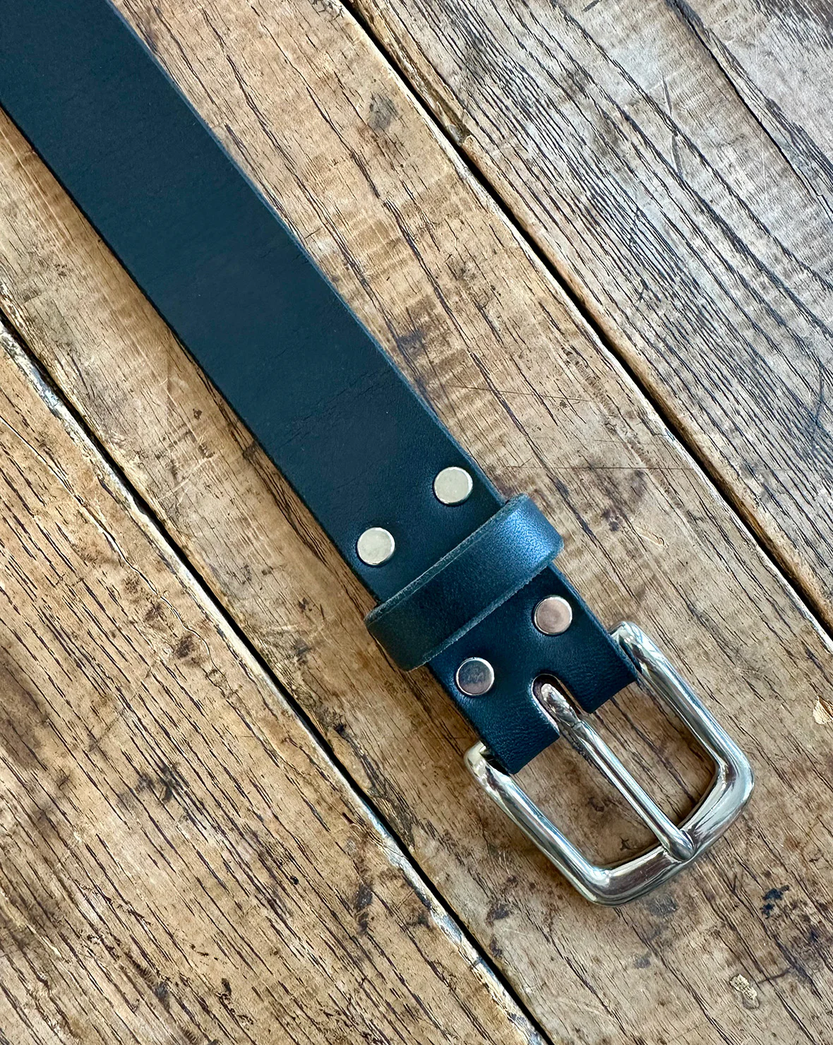 A classic full grain leather belt that looks, smells, and feels like real leather. Made with solid brass (on brown) or stainless steel (on black) buckle and hardware, with a natural grain that patinas beautifully over time. Small batch handmade in our Omaha, NE studio.