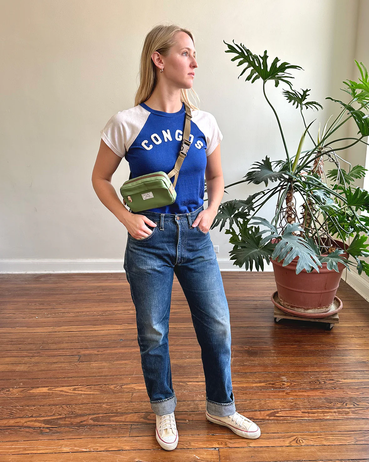 -70%Hip Pack in Upcycled Vintage Rubberized Canvas Sage - SALE—