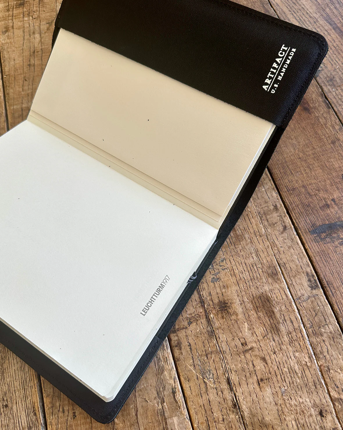 This structured, hard-bound A5 journal is German-made and covered in premium U.S.-sourced leather, handcrafted in small batches in our Omaha, Nebraska studio. Ideal for writing, sketching, recipe collecting, or daily lists, it’s built for durability and develops a natural patina with use.